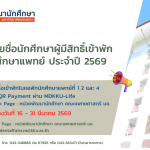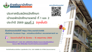 - ประกาศรับสมัครนักศึกษาเข้าหอพักนักศึกษาแพทย์ที่ 1 2 และ 4 ประจำปี 2569